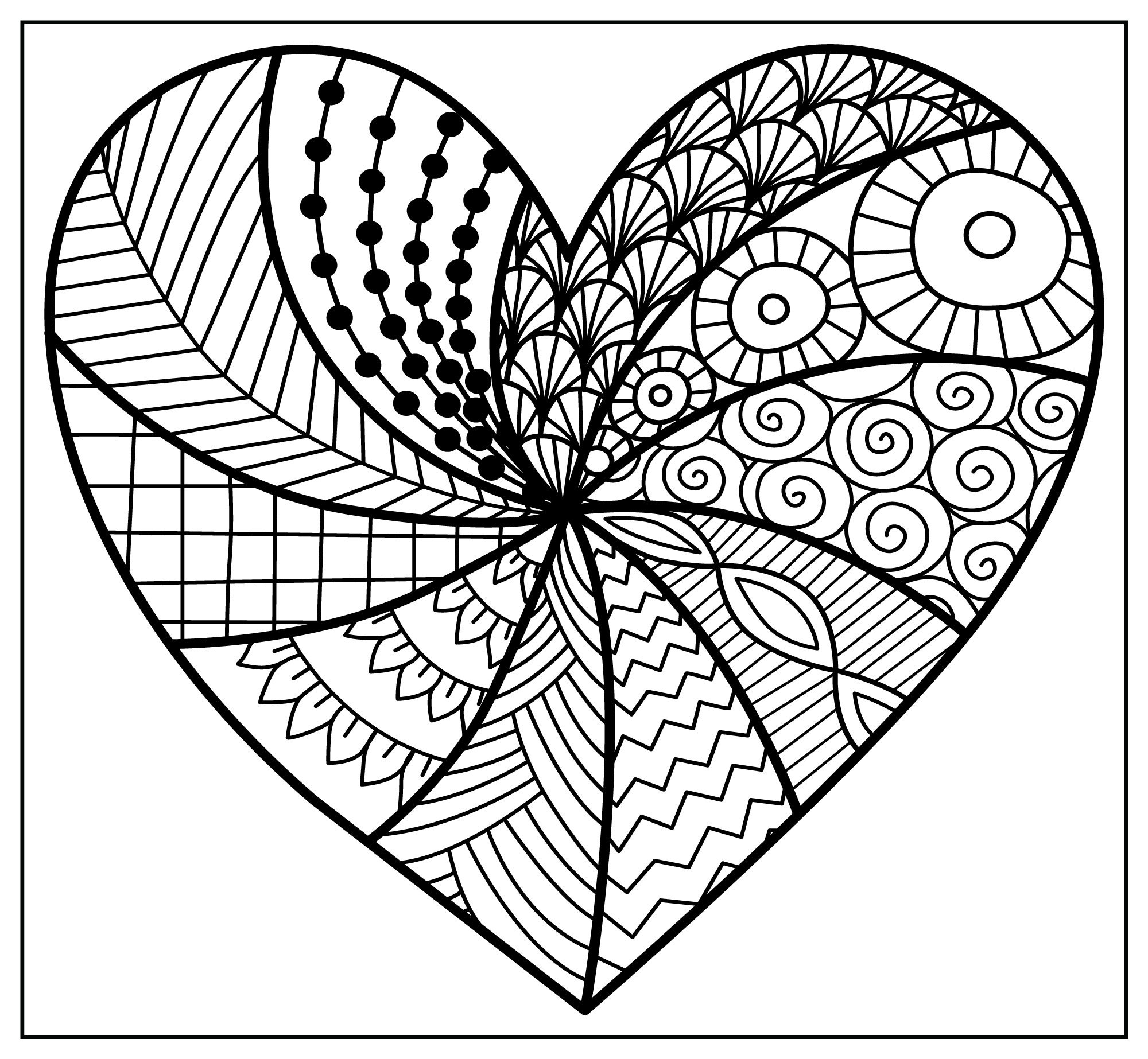 Find free printable hearts coloring pages for adults with complex and detailed designs. Adults, older kids and younger kids can all enjoy these printable heart coloring pages. These coloring pages are full of hearts of all shapes and sizes.